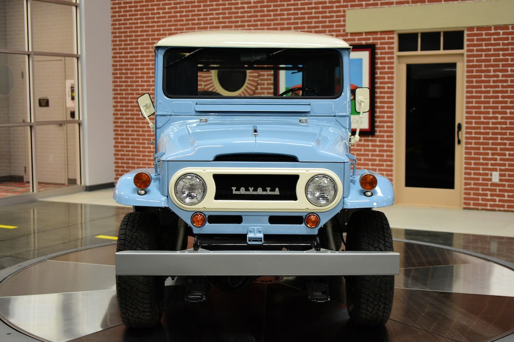 This FJ-40 has had everything either replaced or rebuilt with extreme attention to detail. The motor and drivetrain have been rebuilt and detailed. The interior is all new with speedliner, layed down on the floors very carefully to protect it from rust and the seats have all been redone to look like the originals. All new weatherstripping and seals have been replaced. The paint is the original Baby Blue that has been clearcoated to protect it from fading. The tires are the original size and brand new. It was done right and is stunning. This is a very rare early model with a ribbed top that sets it apart from all the rest.